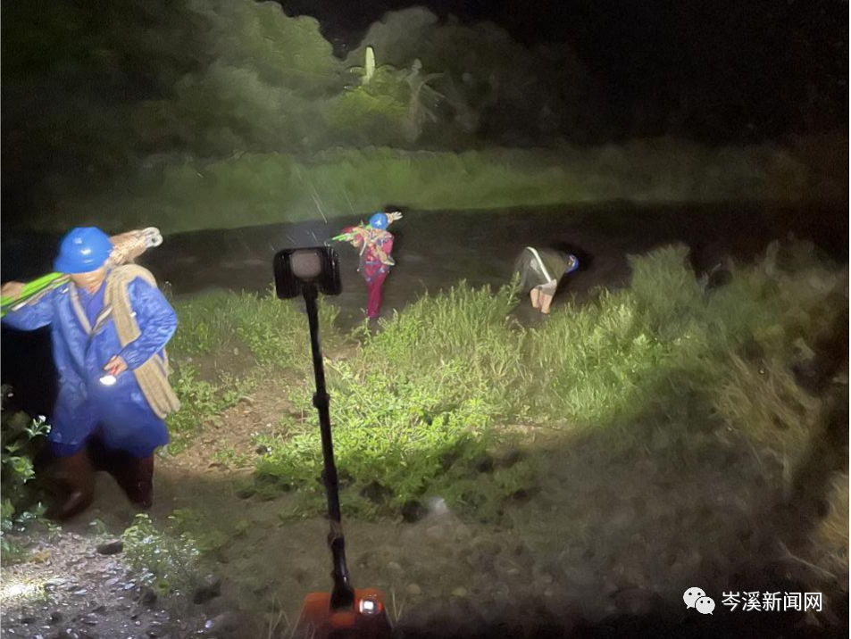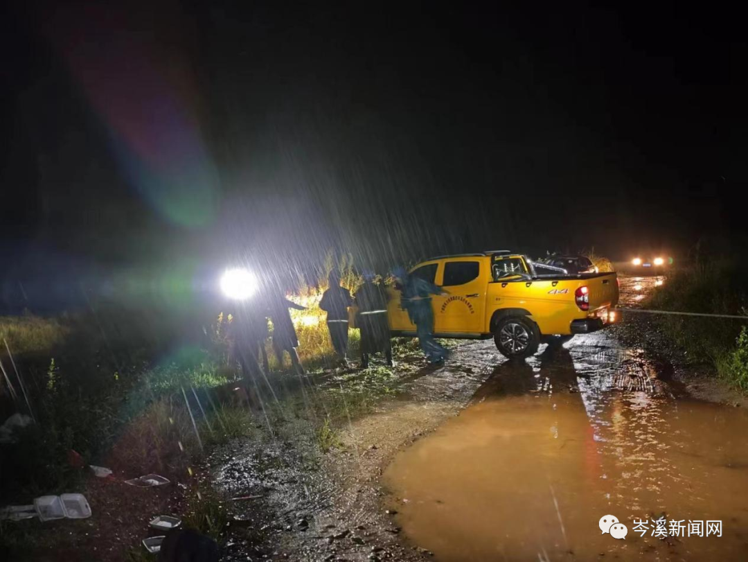 ▲馬路供電所工作人員冒雨進(jìn)行10千伏盤古線大水沖支線搶修。