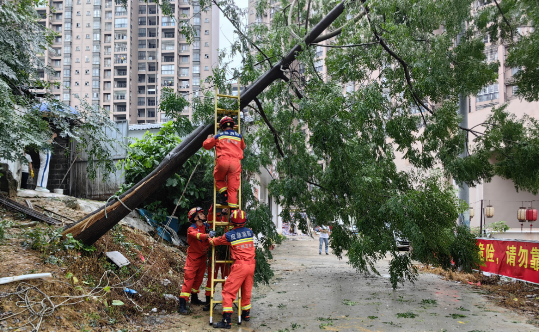 玉林市部分村鎮(zhèn)出現(xiàn)強降雨,伴有大風,多地出現(xiàn)樹木倒塌事故,隨時有電纜斷裂的可能,危及人民群眾生命財產(chǎn)安全,造成交通道路嚴重受阻,玉林市消防救援支隊迅速行動,及時清障保暢通。
