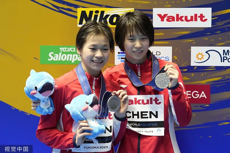 19日,在2023年福岡游泳世錦賽跳水女子10米臺決賽中,陳芋汐、全紅嬋包攬冠亞軍。