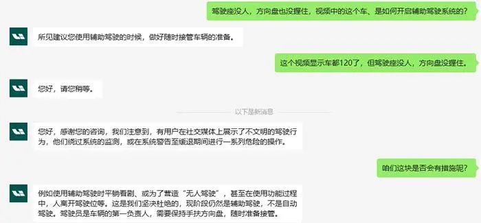 對(duì)此,理想汽車客服客服表示,例如使用輔助駕駛時(shí)平躺看劇、或?yàn)榱藸I(yíng)造“無人駕駛”,甚至在使用功能過程中,人離開駕駛位等,這是我們堅(jiān)決杜絕的,現(xiàn)階段仍然是輔助駕駛,不是自動(dòng)駕駛。駕駛員是車輛的第一負(fù)責(zé)人,需要保持手扶方向盤,隨時(shí)準(zhǔn)備接管。