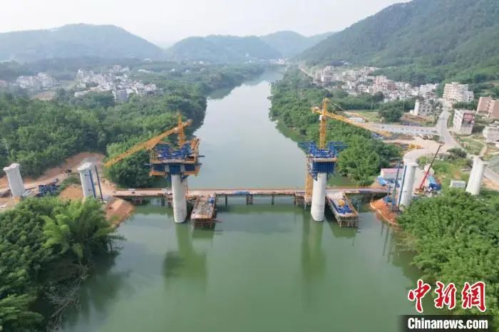 圖為航拍正在建設(shè)的黃華河大橋。 陳海鋒 攝