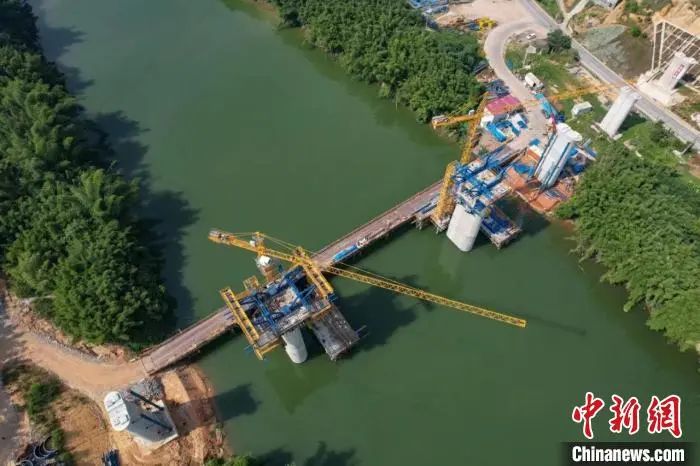 圖為航拍黃華河大橋橋臺(tái)澆筑現(xiàn)場?!£惡dh 攝