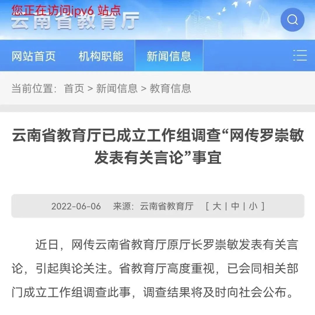 “網(wǎng)傳羅崇敏發(fā)表有關(guān)言論”,云南省教育廳介入!