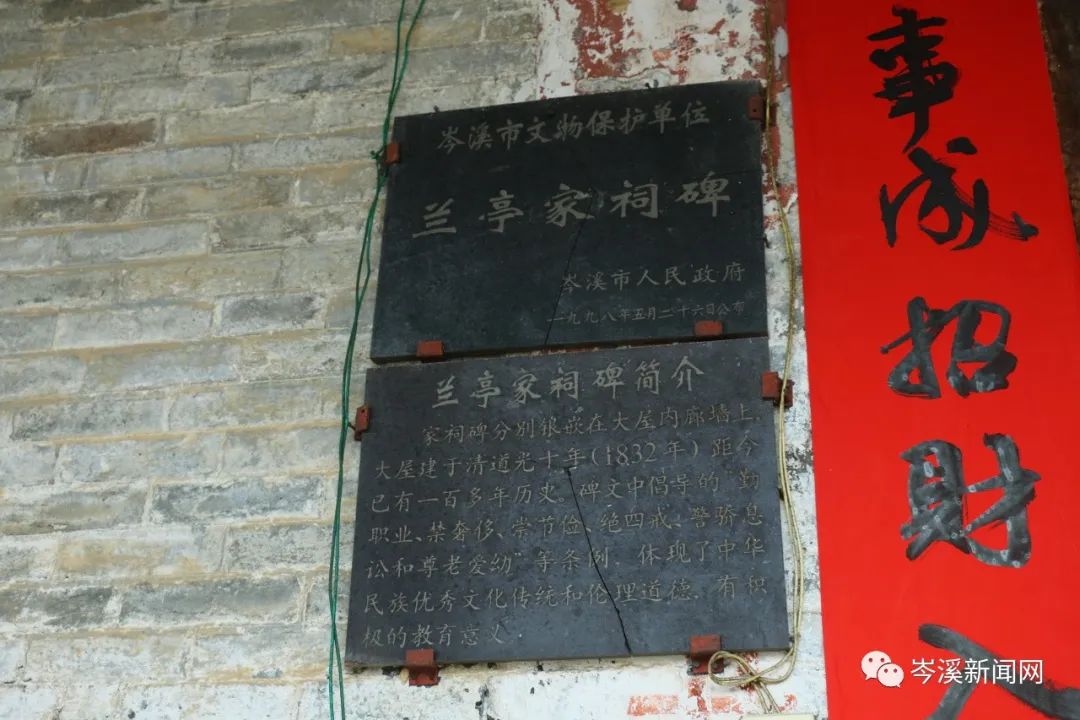在大屋內(nèi)廊墻上,還鋃嵌著蘭亭家祠碑,此碑共四幅12塊,是唐家祖先留給后輩子孫的家訓(xùn)。碑中倡導(dǎo)的“勤職業(yè)、禁奢侈、崇節(jié)儉、絕四戒、警驕息訟和尊老愛幼”等條例,體現(xiàn)了中華民族優(yōu)秀文化傳統(tǒng)和倫理道德。