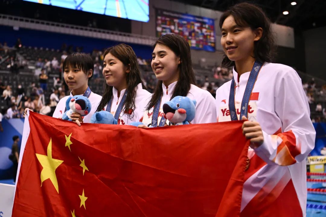 23日,2023世界泳聯(lián)錦標(biāo)賽女子4x100米自由泳接力賽中,由程玉潔、楊浚瑄、吳卿風(fēng)和張雨霏組成的中國隊(duì)以3分32秒40奪得銅牌,并打破亞洲紀(jì)錄。