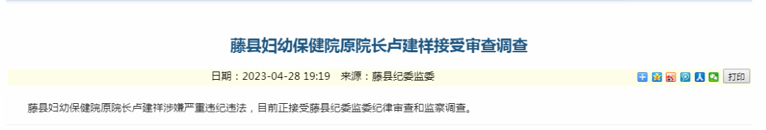 藤縣婦幼保健院原院長盧建祥接受調(diào)查調(diào)查
