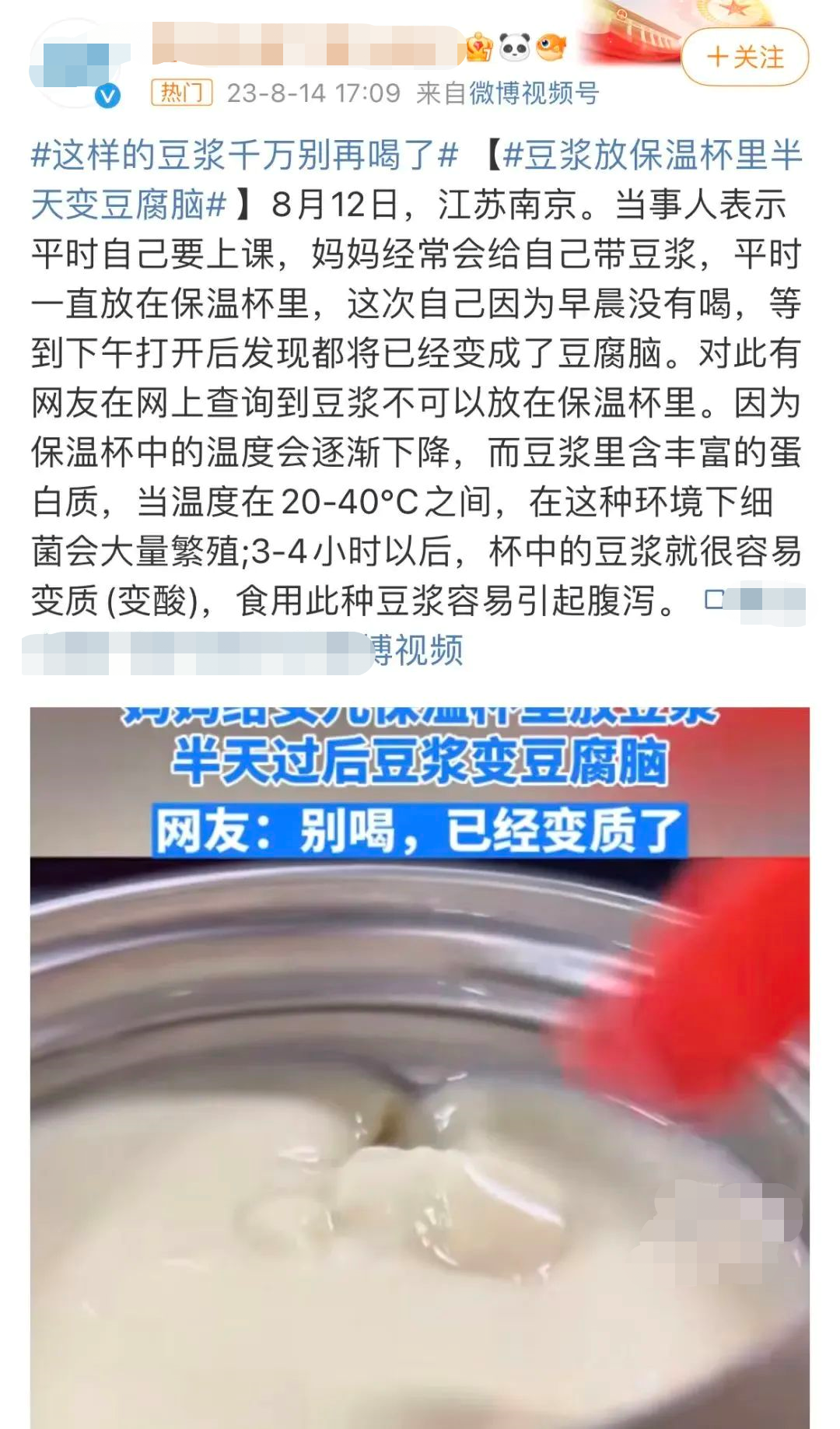 3~4小時(shí)以后,杯中的豆?jié){就很容易變質(zhì)。
