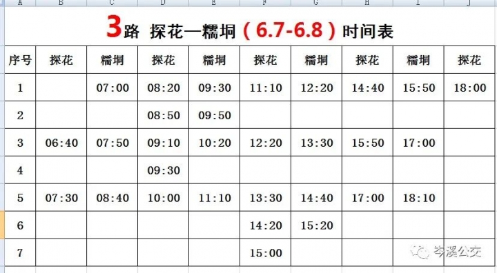 6月7日至6月8日公交線路運營時間表