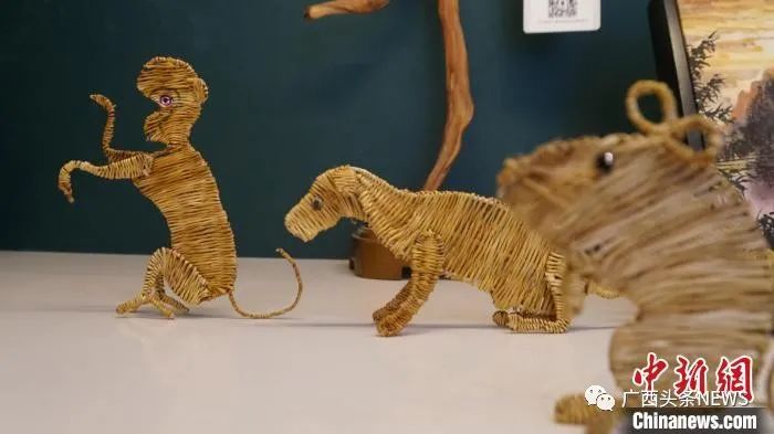 圖為桂林秀峰非遺傳承體驗(yàn)·桂林喜來登站里的十二生肖造型的草編動物。唐蔚晴 攝