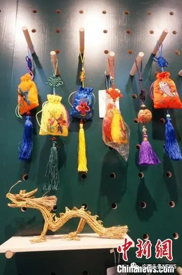 圖為桂林秀峰非遺傳承體驗(yàn)·桂林喜來登站里的袖珍草龍與手工壯繡香藥包。歐惠蘭 攝