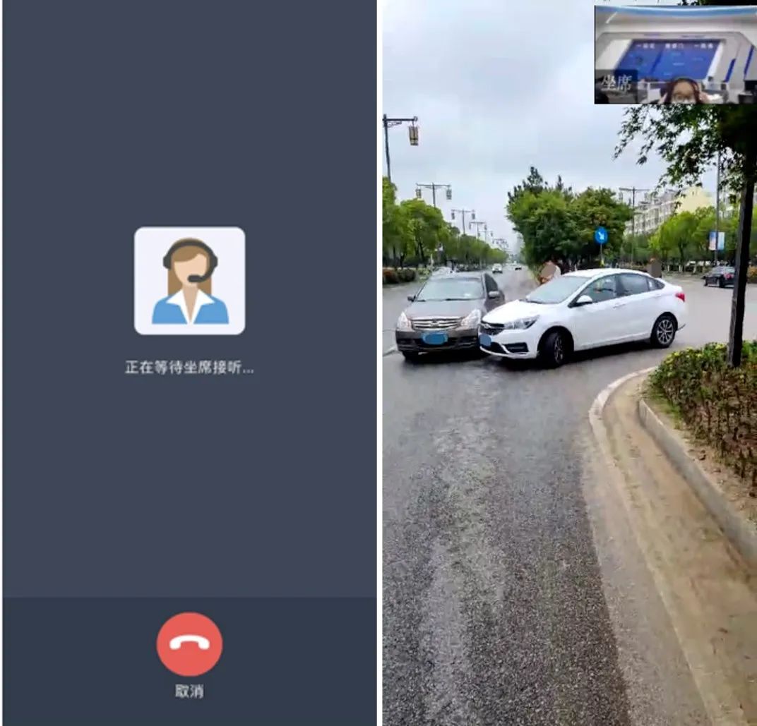 二是“視頻接入處理”:當(dāng)事人點擊“視頻報警”后等待公安機(jī)關(guān)交通管理部門后臺人員接聽,接聽后進(jìn)入視頻通話。后臺人員通過視頻指導(dǎo)當(dāng)事人在事故后方來車方向做好警示提醒,防止發(fā)生二次事故;通過視頻查看事故現(xiàn)場,在線采集雙方當(dāng)事人基本信息,在線拍攝事故現(xiàn)場照片,固定相關(guān)證據(jù)。在視頻處理過程中,當(dāng)事人持手機(jī)可以切換前后攝像頭,配合公安機(jī)關(guān)交通管理部門完成現(xiàn)場取證。