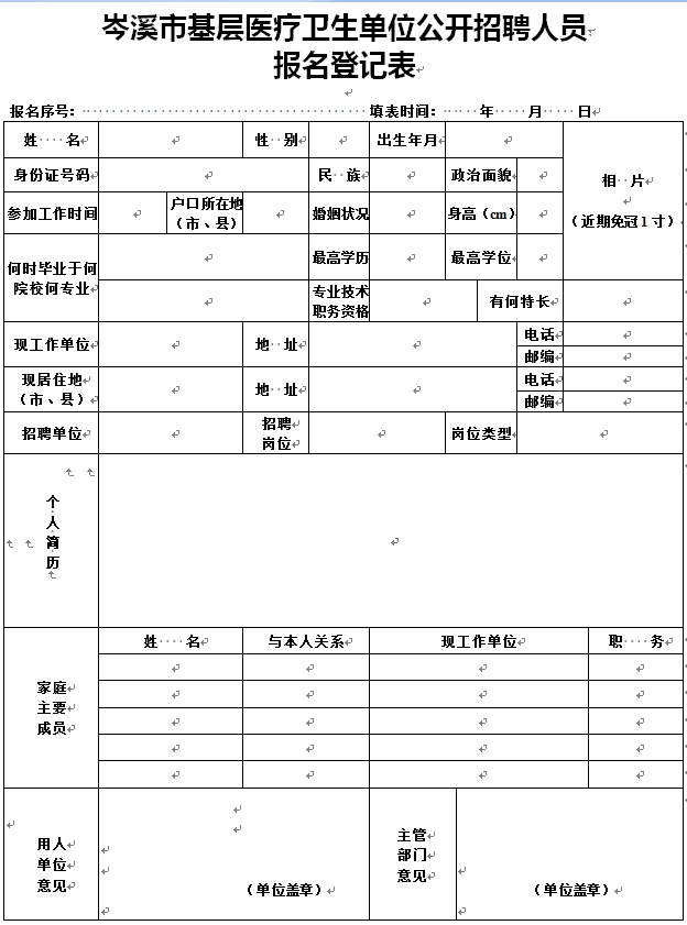 1.岑溪市基層醫(yī)療衛(wèi)生單位公開招聘人員報名登記表(附件2);