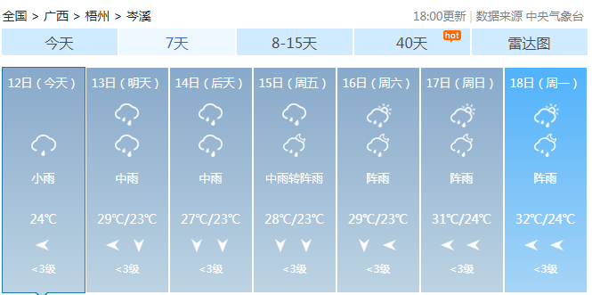 據(jù)梧州天氣最新預(yù)報: