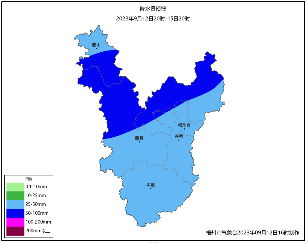 梧州各縣市9月12日20時-15日20時累計雨量預(yù)報