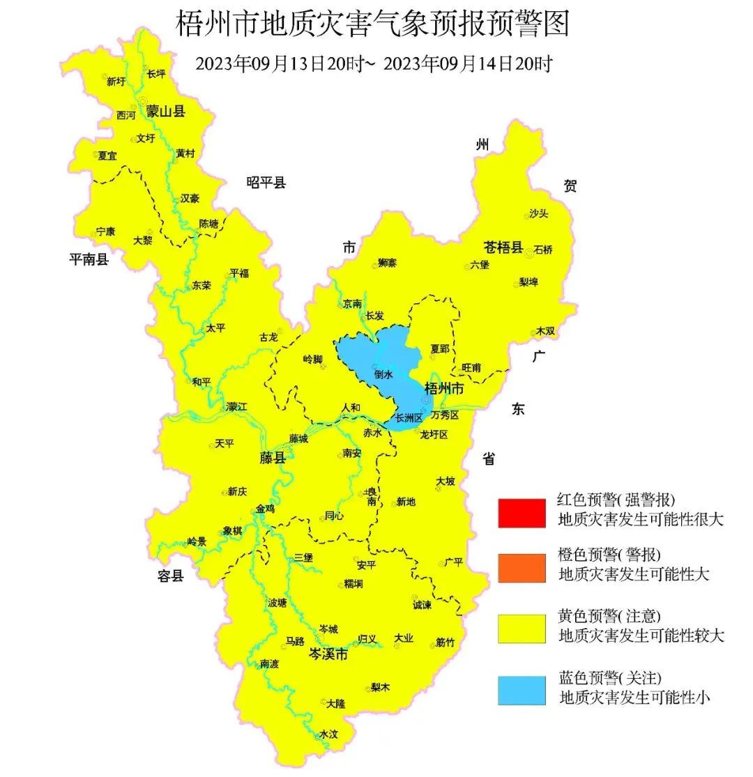 根據(jù)梧州市氣象臺未來24小時(shí)降雨預(yù)報(bào)及前期降雨實(shí)況,結(jié)合地質(zhì)環(huán)境條件分析,預(yù)計(jì)未來24小時(shí)內(nèi)藤縣、蒼梧縣、蒙山縣、岑溪市、龍圩區(qū)、萬秀區(qū)地質(zhì)災(zāi)害風(fēng)險(xiǎn)預(yù)警等級為黃色預(yù)警(三級響應(yīng)),氣象因素等致地質(zhì)災(zāi)害發(fā)生風(fēng)險(xiǎn)較高;長洲區(qū)地質(zhì)災(zāi)害氣象風(fēng)險(xiǎn)預(yù)警等級為藍(lán)色預(yù)警(四級響應(yīng)),氣象因素等致地質(zhì)災(zāi)害發(fā)生有一定風(fēng)險(xiǎn),請做好地災(zāi)防范工作。來源|中國天氣網(wǎng)、梧州天氣、岑溪新聞網(wǎng)、墨跡天氣 編輯|岑溪今日(信息僅作分享用,如有侵權(quán)請聯(lián)系刪除,謝謝)看完順手“點(diǎn)贊”“在看”唄