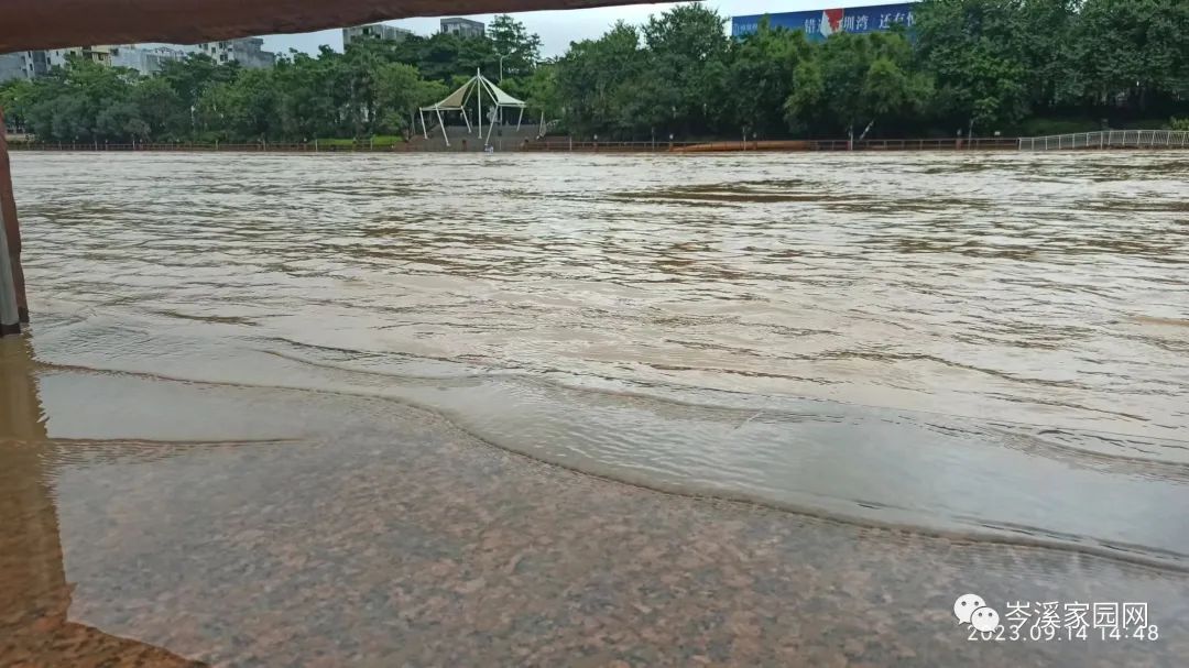 2023年9月14日08:30分,義昌江岑溪市區(qū)段水位上漲明顯。2023年9月14日14:45分左右,義昌江岑溪市區(qū)段水位上漲明顯。