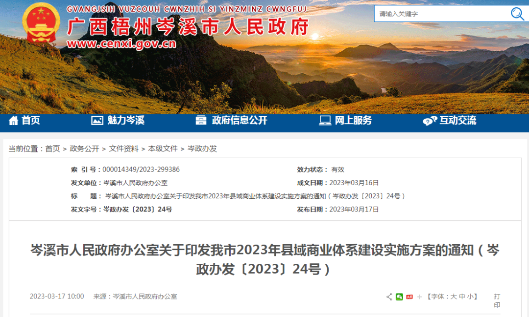 今年3月16日,岑溪市人民政府辦公室印發(fā)關(guān)于岑溪市2023年縣域商業(yè)體系建設(shè)實施方案的通知(岑政辦發(fā)〔2023〕24號),整體項目建設(shè)涉及岑城、南渡、水汶、筋竹、梨木等鎮(zhèn),詳情點擊了解《涉及多鎮(zhèn),岑溪2023年縣域商業(yè)建設(shè)項目清單出爐》。