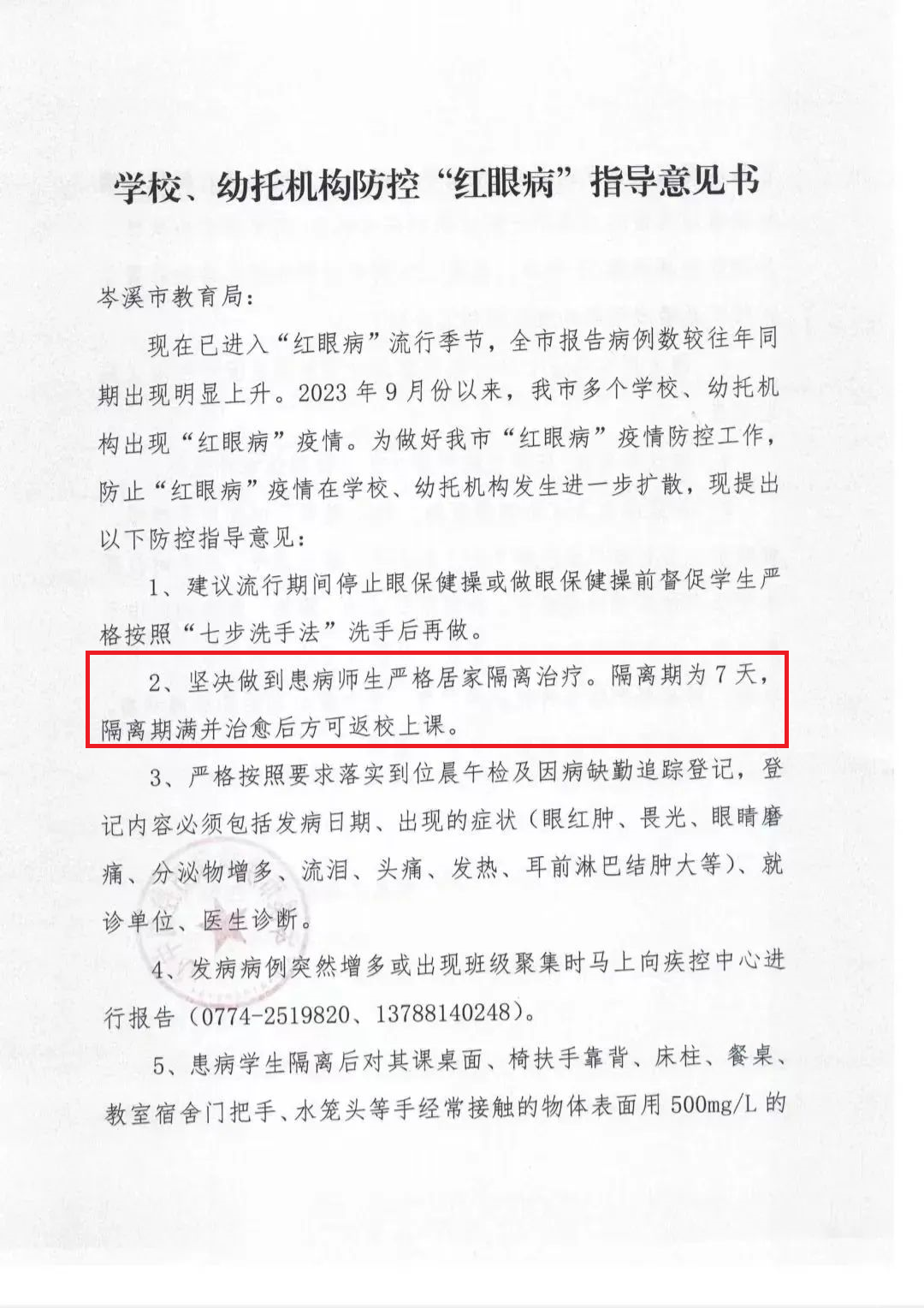 經(jīng)確診為“紅眼病”的患者,隔離管理期為發(fā)病7天后,以癥狀消失為解除隔離的判定條件。
