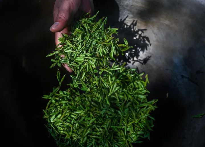 龍井村茶農(nóng)在手工炒制西湖龍井“明前茶”。新華社記者 徐昱 攝