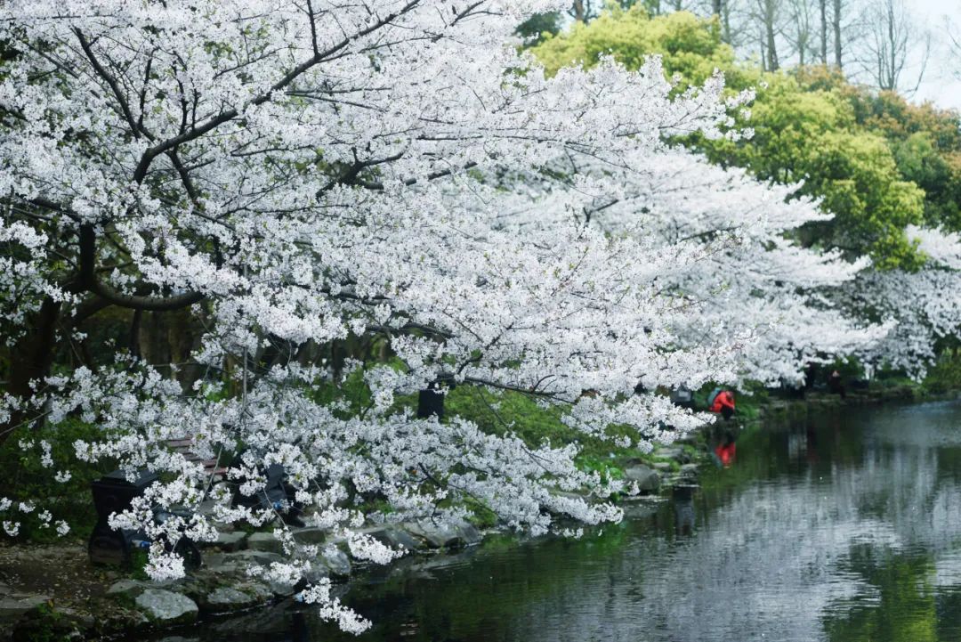 游客在杭州西湖邊觀賞盛開的櫻花。新華社發(fā)(龍巍 攝)