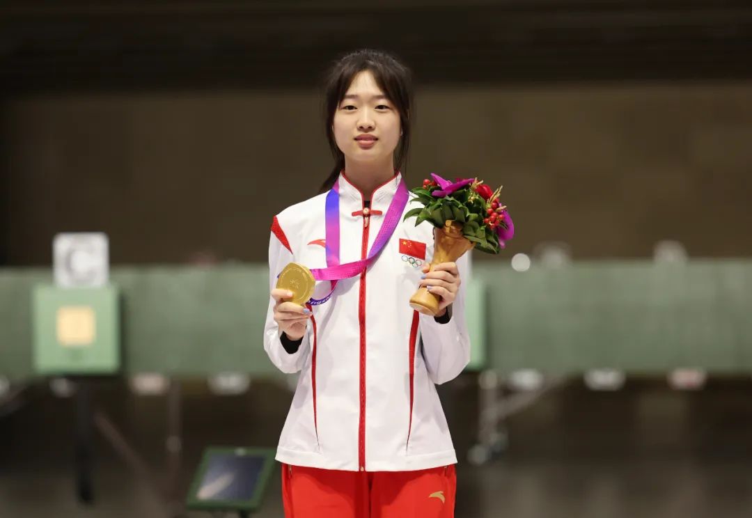 在射擊女子10米氣步槍團(tuán)體、個人賽奪冠
