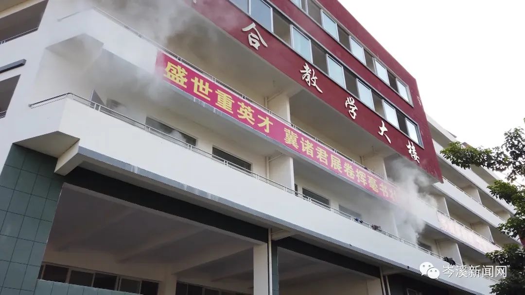 消防應(yīng)急救援演練模擬岑溪市第二中學(xué)教學(xué)區(qū)和宿舍區(qū)突發(fā)火災(zāi),有學(xué)生被困,需立即進行疏散救援。發(fā)生險情后,學(xué)校應(yīng)急指揮部第一時間啟動應(yīng)急預(yù)案,學(xué)生們在老師的指揮下迅速拿衣服或毛巾捂住口鼻,按照規(guī)劃路線有序撤離教室和宿舍。
