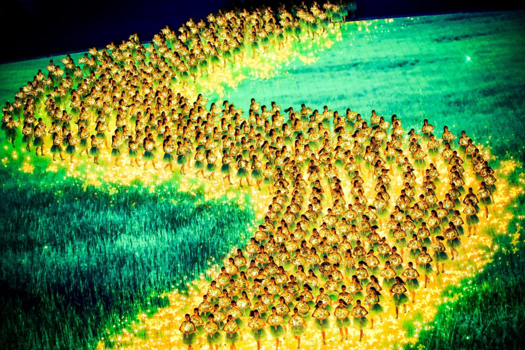 開幕式上,近24000塊屏幕組成的6000平方米地屏,給全世界的觀眾帶來了極具震撼的視覺享受。開幕式結(jié)束后,地屏很快被移除,并恢復(fù)成草坪保障田徑比賽順利進行。
