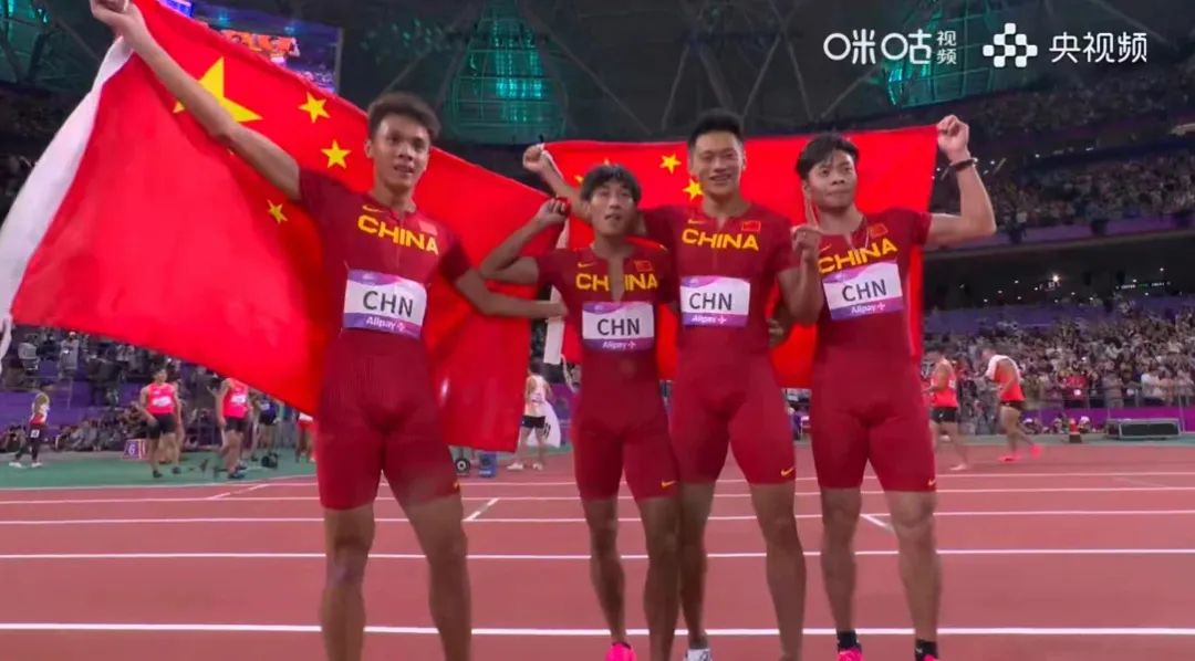 10月3日晚,“飛人天團”大戰(zhàn),在杭州亞運會男子4×100米接力決賽中,由陳冠鋒、謝震業(yè)、嚴(yán)海濱和陳佳鵬組成的中國男子短跑接力隊,以38秒29的成績贏得冠軍。來自廣西梧州的嚴(yán)海濱以第三棒出戰(zhàn),他火力全開,與隊友順利完成交接棒,助力沖刺金牌。(梧州零距離)