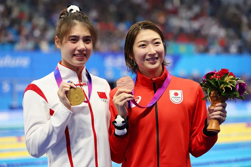 挑戰(zhàn)的終點(diǎn),或許并不是金牌。田徑女子鉛球決賽,鞏立姣奪得冠軍,實(shí)現(xiàn)亞運(yùn)會(huì)上的三連冠。當(dāng)她完成最后一投,現(xiàn)場響起了她曾經(jīng)唱給自己的《勇氣》。從拿起人生中的第一枚鉛球到奧運(yùn)冠軍,鞏立姣用了21年;從20.35米到最佳成績20.58米,她默默努力了11年。至今,她收獲了這個(gè)項(xiàng)目幾乎所有冠軍頭銜。34歲的載譽(yù)老將,其實(shí)可以功成身退了,但鞏立姣依然選擇不斷突破自己。“即使有一百個(gè)理由去放棄,但只要有一個(gè)理由存在,我就可以堅(jiān)持,那就是我的終極夢想——21米。”奪得女子50米蝶泳冠軍后,張雨霏非常罕見地哭了,不是為自己,而是為對手——獲得銅牌的日本選手池江璃花子。池江璃花子曾在2018年雅加達(dá)亞運(yùn)會(huì)狂攬6枚金牌,被譽(yù)為日本游泳的“明日之星”。但次年,她不幸罹患白血病,夢想之路戛然而止。“我想給大家勇氣,尤其是那些和我一樣患病的人?!?/span>經(jīng)歷與病痛的生死搏斗后,她像個(gè)戰(zhàn)士一樣重新回到最愛的泳池。東京奧運(yùn)會(huì)上,張雨霏曾與池江璃花子約定“亞運(yùn)會(huì)見”。今年,她們終于一起站上領(lǐng)獎(jiǎng)臺(tái)。張雨霏含淚說:“只要她出現(xiàn)在泳池里,就是一個(gè)奇跡?!?/strong>