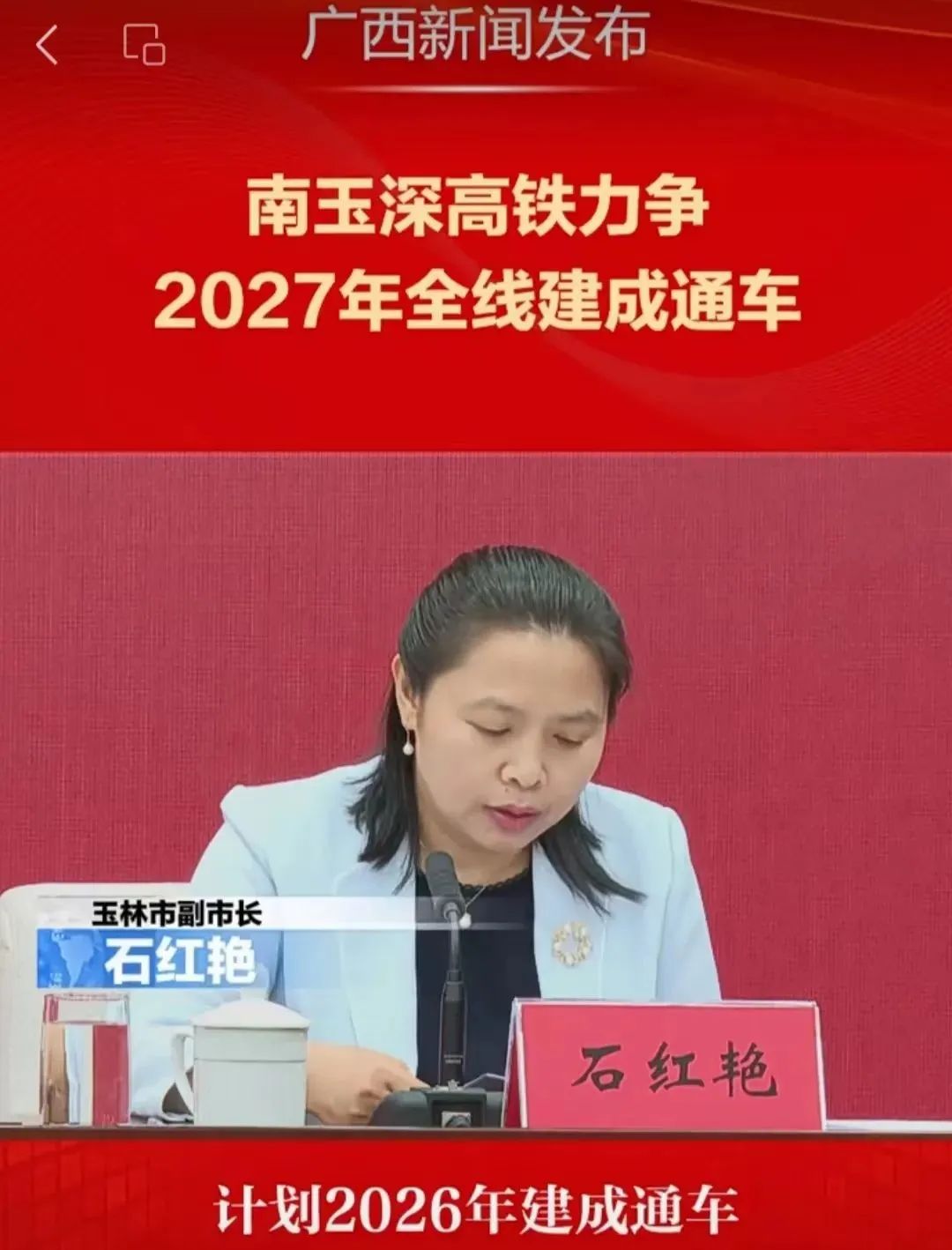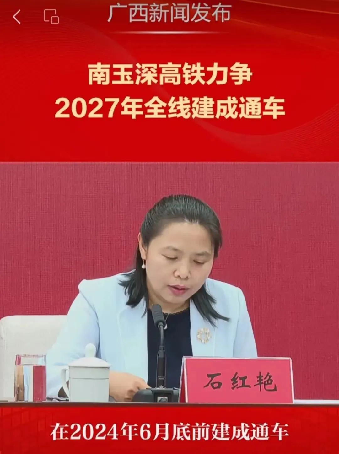 南深高鐵南寧至玉林段力爭(zhēng)2024年6月底前建成通車(chē);南深高鐵玉林至岑溪段計(jì)劃2026年建成通車(chē);