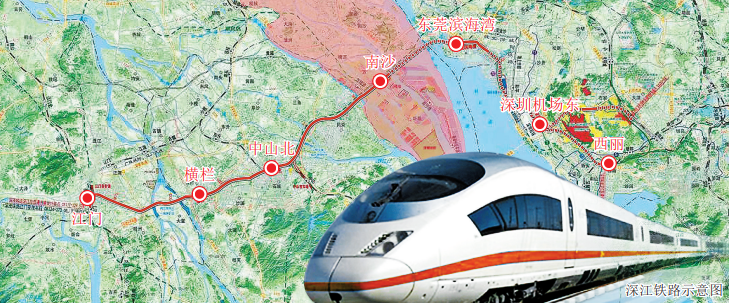 深江線路正線從規(guī)劃的深圳樞紐西麗站引出,經(jīng)深圳寶安、東莞濱海灣、廣州南沙、中山至江門(mén),正線全長(zhǎng)116公里,建設(shè)工期5.5年(不含先開(kāi)段)。全線共設(shè)深圳西麗(深江鐵路建設(shè)項(xiàng)目不含西麗站)、深圳機(jī)場(chǎng)東、東莞濱海灣、南沙、中山北、橫欄、江門(mén)站等7座車(chē)站。