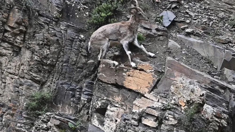 近日,有游客拍到華山峭壁上巖羊奔跑,腳步輕盈快速移動(dòng),如履平地,網(wǎng)友表示:華山派的羊果然不一般!