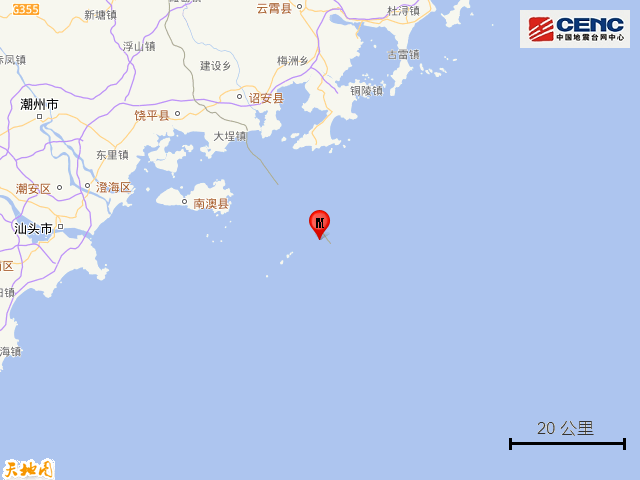 周邊縣城:震中距南澳縣39公里、距福建東山縣43公里、距福建詔安縣49公里、距饒平縣55公里、距澄海區(qū)67公里,距汕頭市72公里。