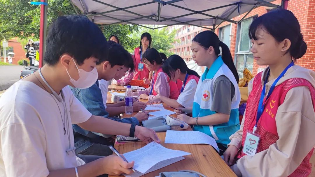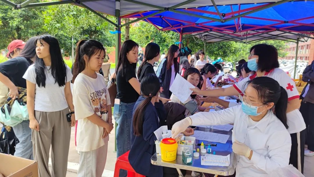 獻(xiàn)血點(diǎn)設(shè)置在學(xué)校食堂門口,無償獻(xiàn)血志愿服務(wù)隊的隊員們早早地來到了現(xiàn)場認(rèn)真做好志愿服務(wù),耐心地解答同學(xué)們的咨詢,協(xié)助師生們填寫征詢表,并送上面包、糖水,活動現(xiàn)場熱鬧又秩序井然。獻(xiàn)血車上也是熱血涌動,同學(xué)們互相鼓勵,分享獻(xiàn)血感受,氛圍其樂融融。全校師生通過無償獻(xiàn)血,展現(xiàn)了勇于擔(dān)當(dāng)、傾情奉獻(xiàn)、朝氣蓬勃的精神風(fēng)貌。
