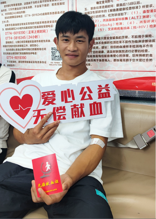 匯聚青春正能量,無償獻(xiàn)血傳愛心。梧州醫(yī)學(xué)高等??茖W(xué)校10月18日起開展為期三天的團(tuán)體無償獻(xiàn)血活動,響應(yīng)《獻(xiàn)血法》中“國家鼓勵國家工作人員、現(xiàn)役軍人和高等學(xué)校在校學(xué)生率先獻(xiàn)血,為樹立社會新風(fēng)尚作表率”的倡議,發(fā)揮青年大學(xué)生無償獻(xiàn)血主力軍的作用,全校270名師生積極參與活動成功獻(xiàn)血57300毫升,捐獻(xiàn)血液,分享生命。