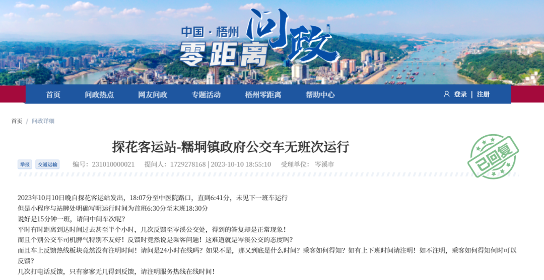 平時(shí)有時(shí)距離到達(dá)時(shí)間過去甚至半個(gè)小時(shí),幾次反饋至岑溪公交處,得到的答復(fù)卻是正?,F(xiàn)象!