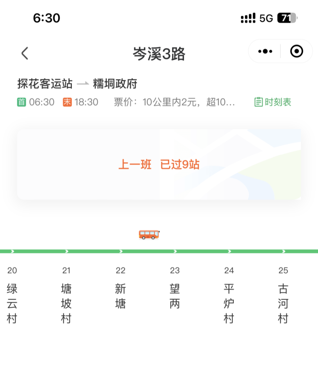 但是小程序與站牌處明確寫明運(yùn)行時(shí)間為首班6:30分至末班18:30分