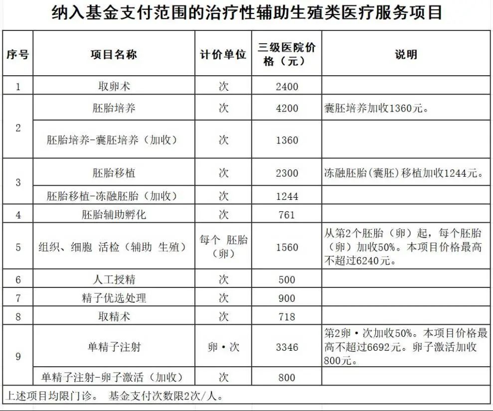 ▲納入基金支付范圍的治療性輔助生殖類醫(yī)療服務(wù)項(xiàng)目。