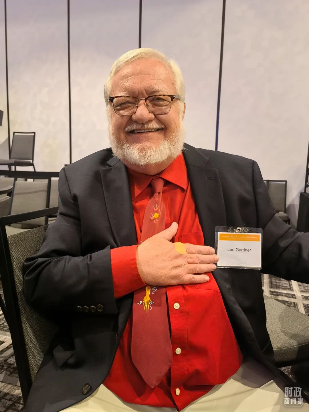 △年逾70歲的李·加德納,是“鼓嶺故事”主人公密爾頓·加德納的侄孫。當天他特意佩戴了一條繡有“中國龍”的領(lǐng)帶。(總臺央視記者石丞、國廣記者李晉拍攝)