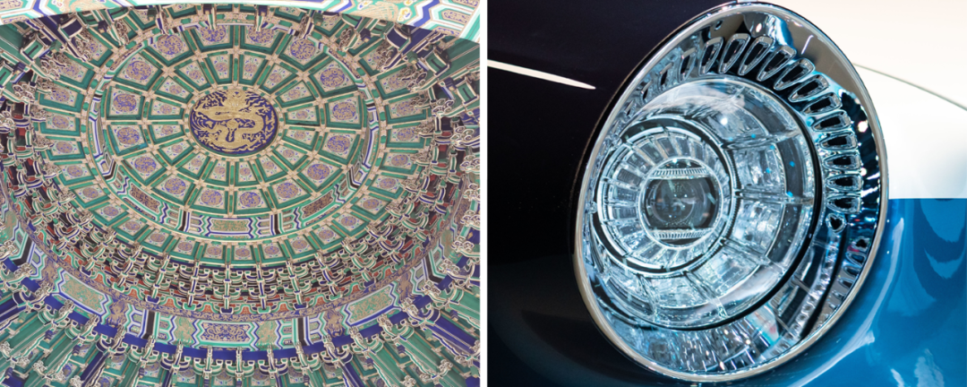 前部車燈創(chuàng)意來自天壇藻井,格柵靈感源自玉管竹節(jié),滿滿中國風(fēng)。