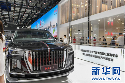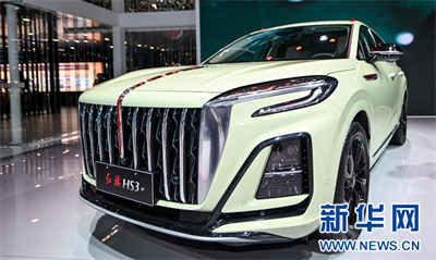 2023年7月17日,觀眾在長春汽博會紅旗品牌汽車展區(qū)參觀紅旗HS3車型。