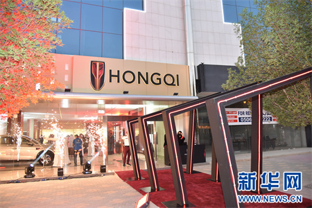 2021年7月2日,紅旗汽車在沙特首都利雅得首店開業(yè)。這是6月30日在沙特利雅得拍攝的中國一汽紅旗旗艦店外景。