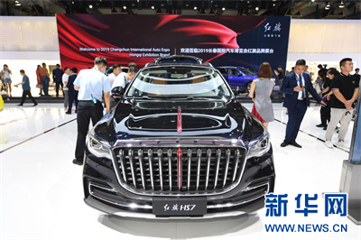 2019年7月12日,在第16屆中國長春國際汽車博覽會現(xiàn)場,參觀者參觀紅旗HS7。