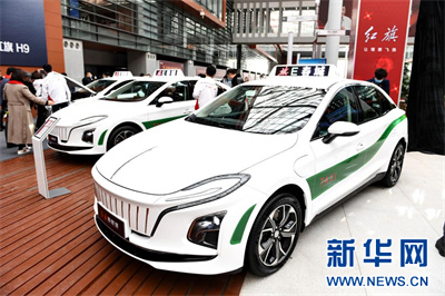這是在2021年“旗E春城 綠色吉林”項目啟動儀式現(xiàn)場展出的紅旗新能源出租車。