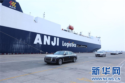 這是2020年12月30日在天津港拍攝的紅旗品牌汽車裝船現(xiàn)場。