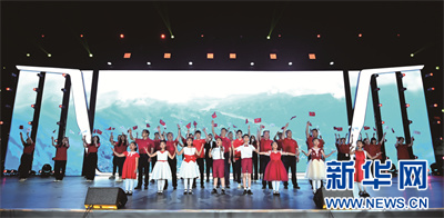 2012年7月15日,一汽職工在紅旗H7下線儀式現(xiàn)場表演合唱。