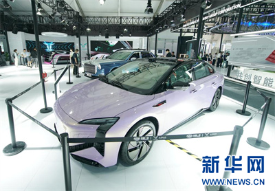 2023年5月27日,在2023中關(guān)村論壇展覽(科博會)中拍攝的紅旗新能源汽車。