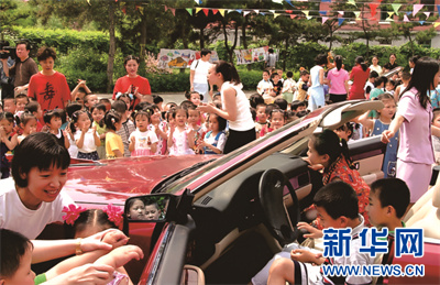 2000年,紅旗轎車在市場推廣中受到孩子們的喜愛。