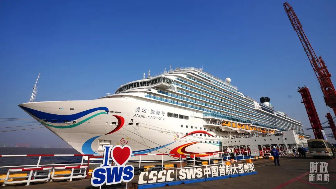 △中國(guó)首制大型游輪——愛(ài)達(dá)·魔都號(hào)。(總臺(tái)央視記者劉琦拍攝)