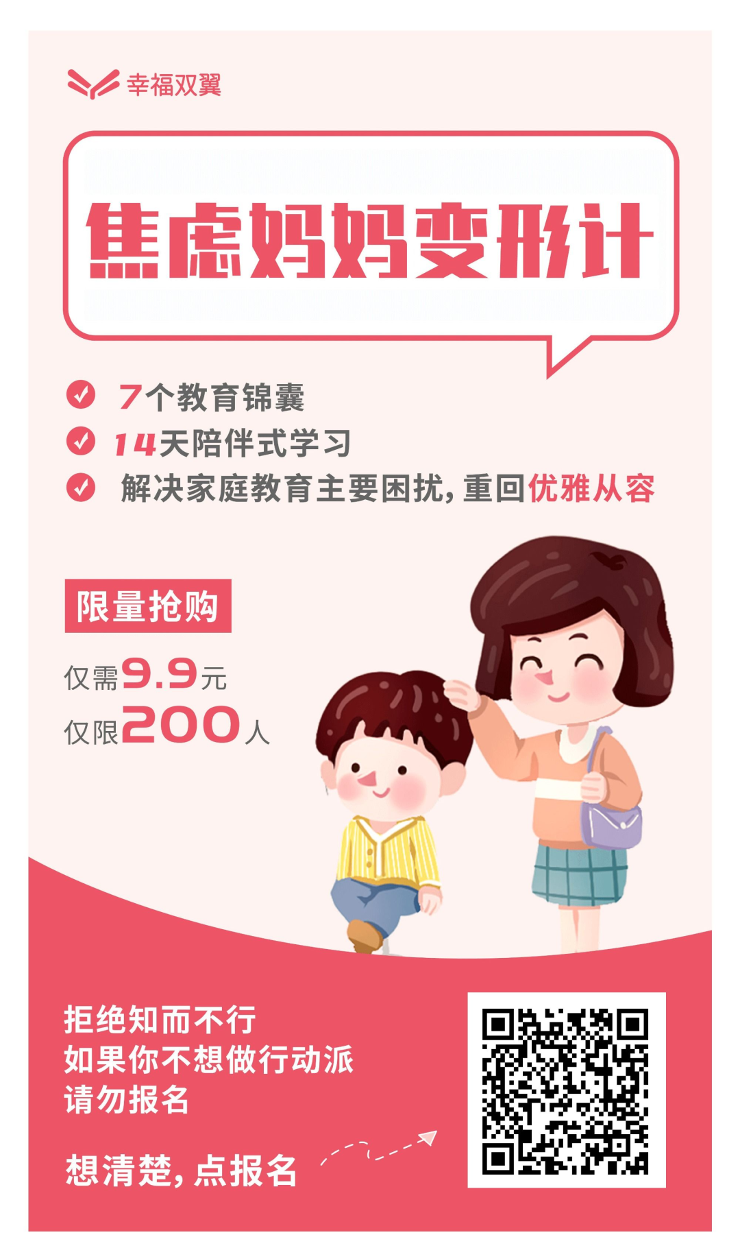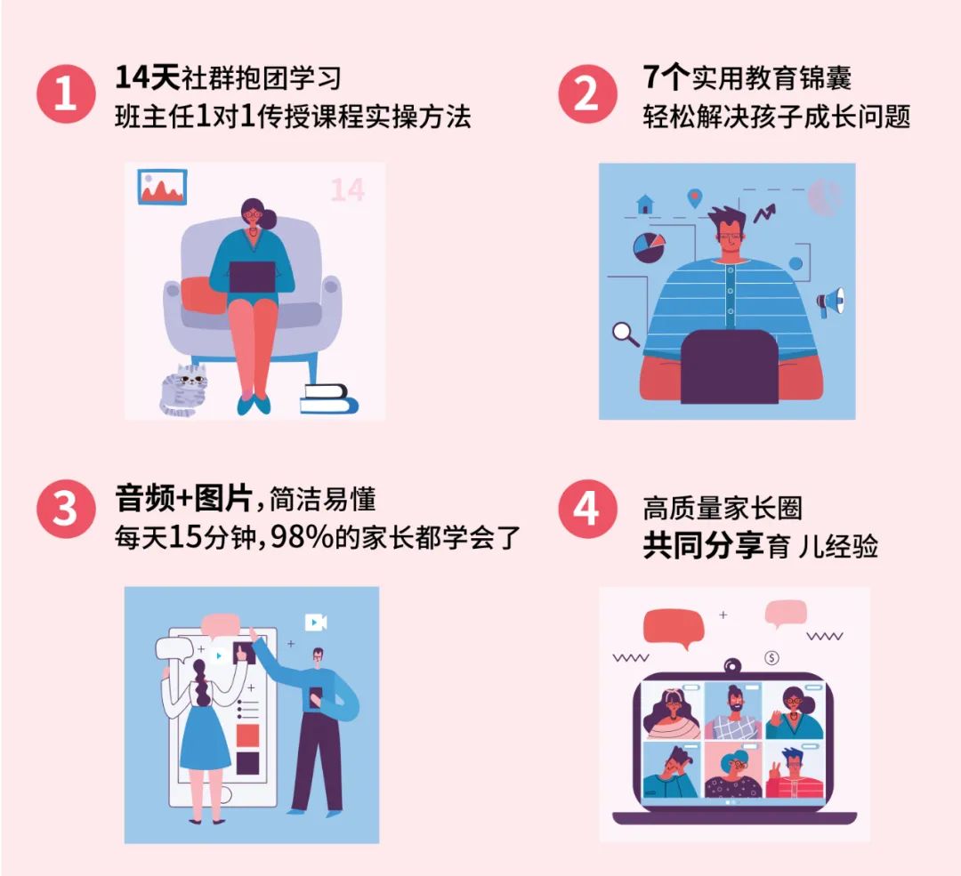 希望家庭事業(yè)兩平衡的忙碌職場父母 控制不住脾氣,想和孩子和平相處的焦慮家長 孤軍奮戰(zhàn),希望全力培養(yǎng)孩子的全職媽媽 手忙腳亂,想要學(xué)習(xí)經(jīng)驗的新手爸媽 有原生家庭創(chuàng)傷的成年人